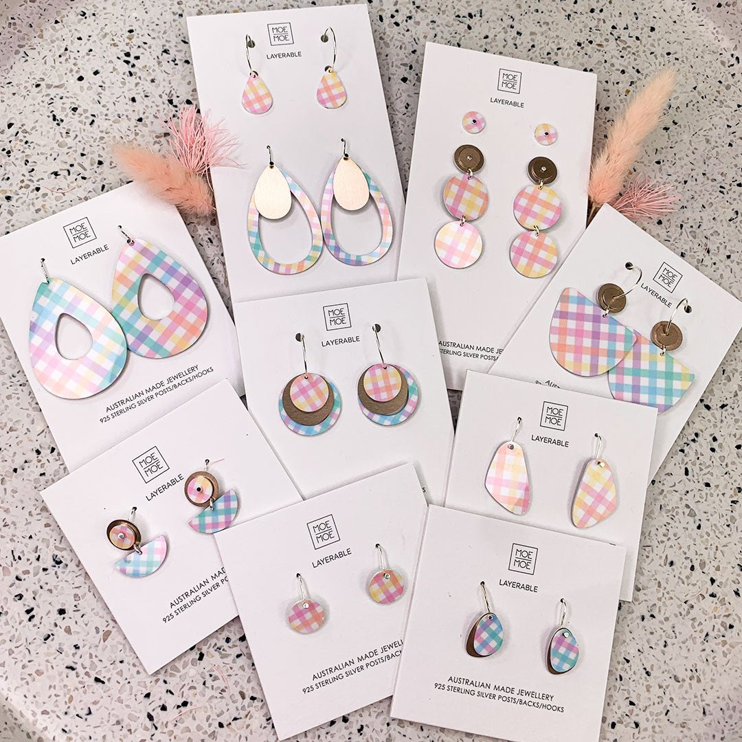 Please note, our gingham print is unique on every shape we make. The artwork placement on your earrings may not look exactly as shown here, but they'll be equally as amazing.