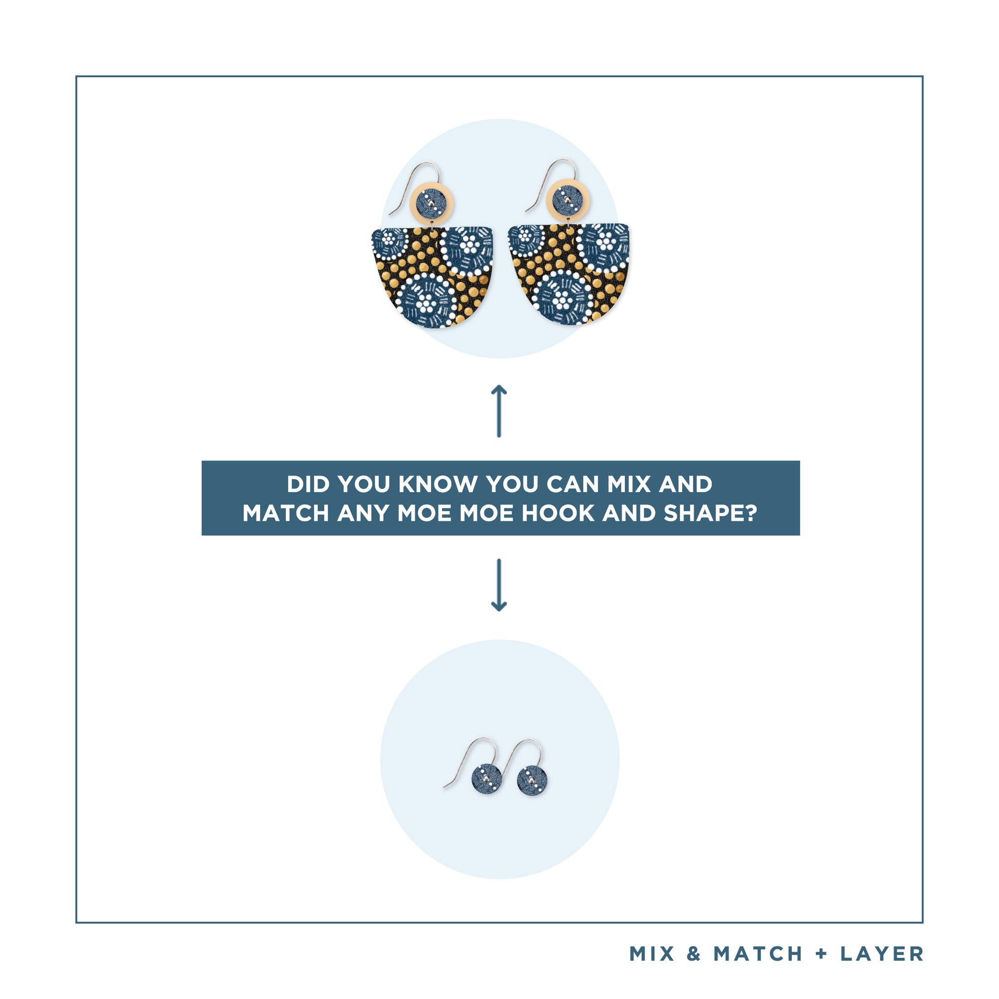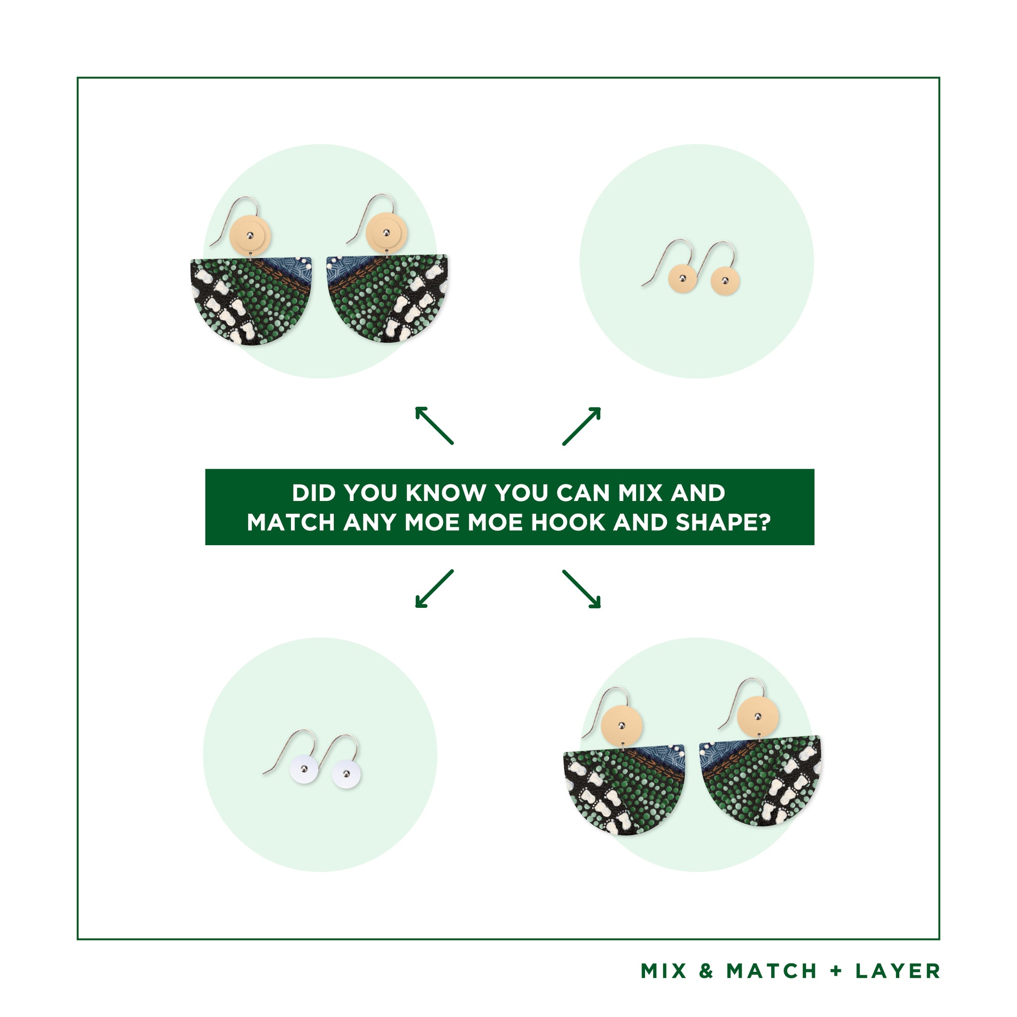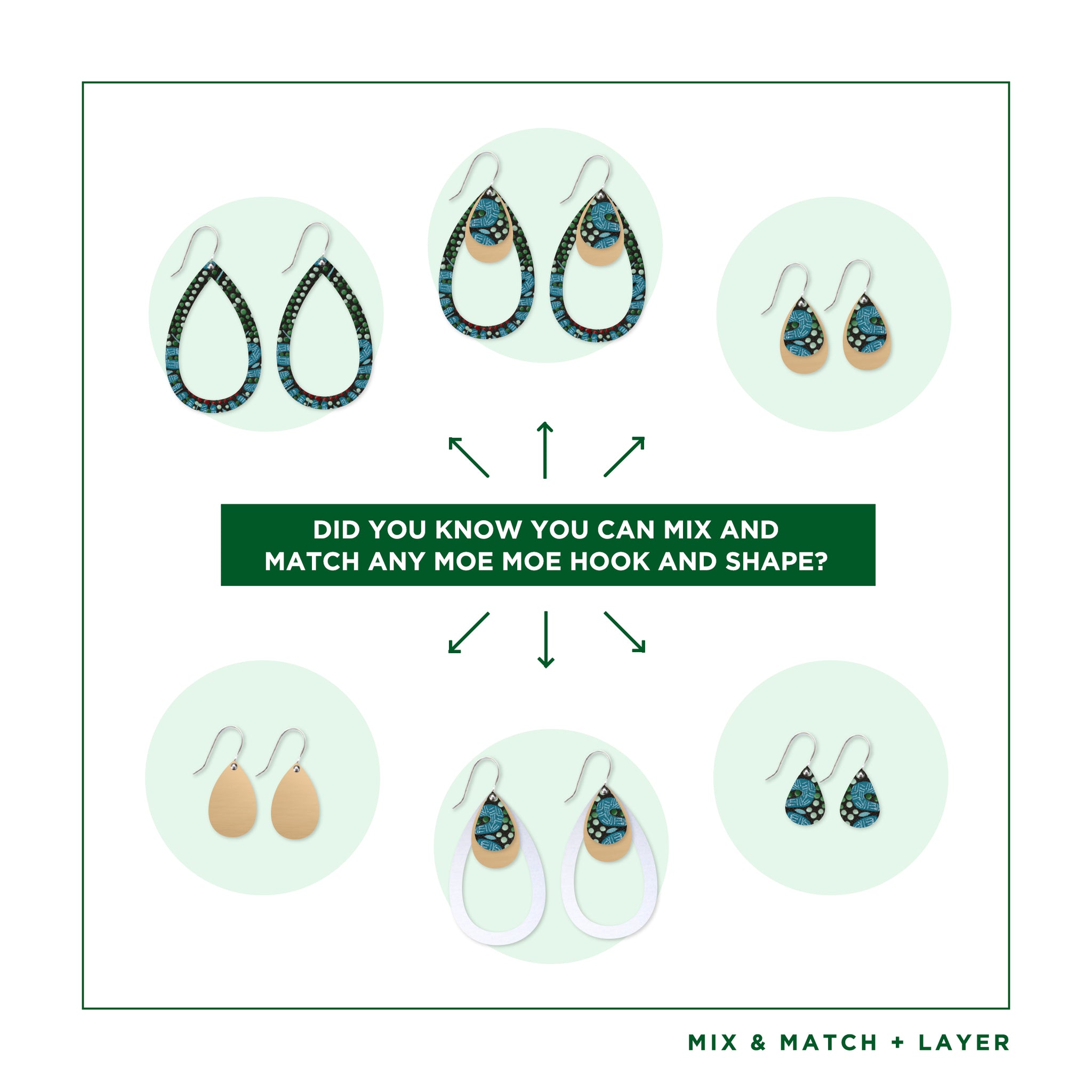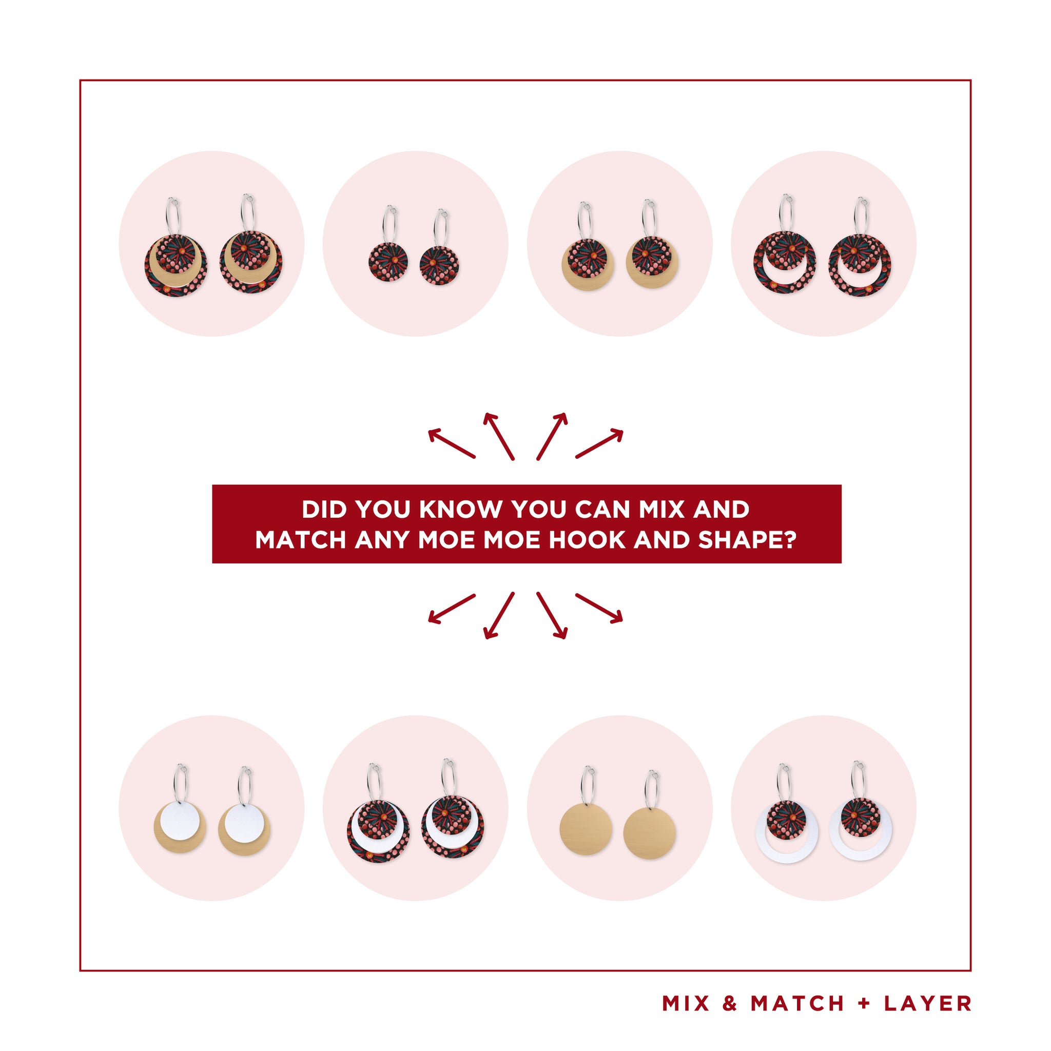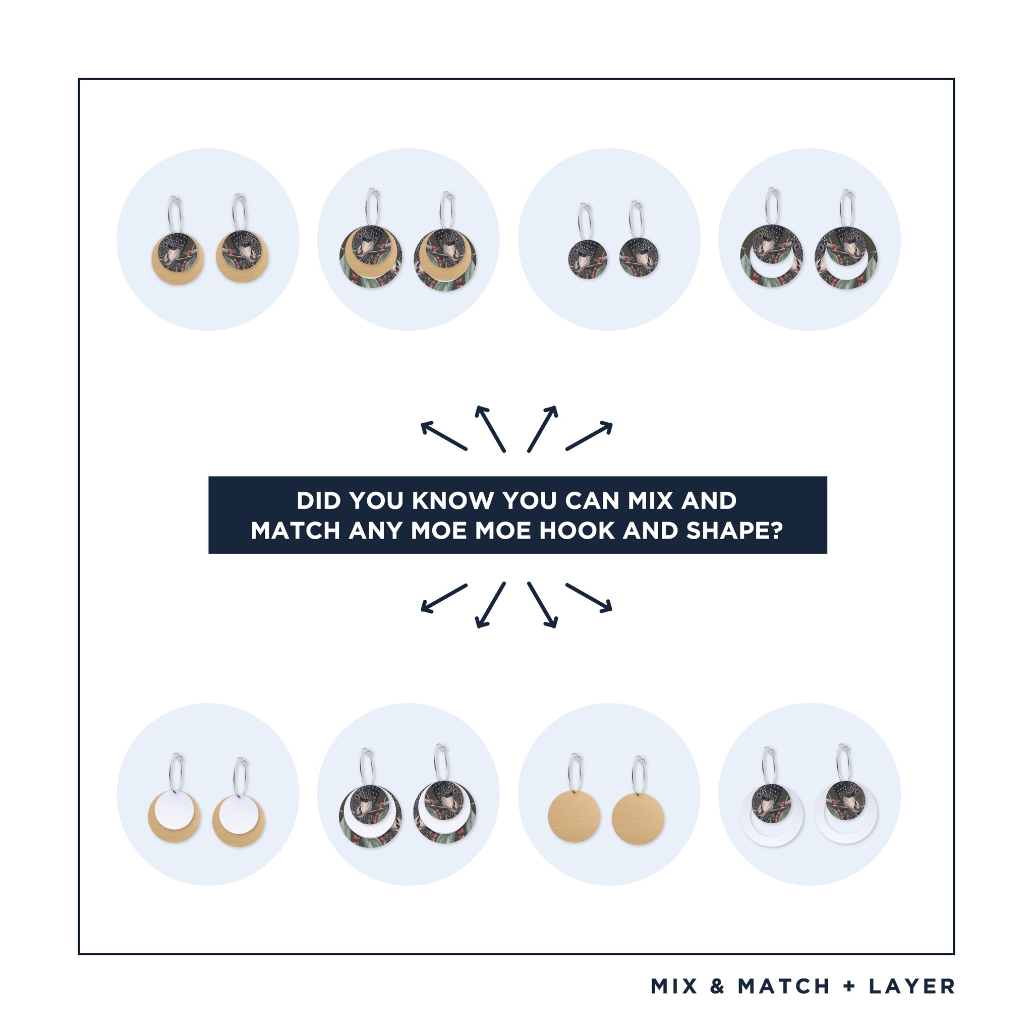 A fresh, fun take on a classic shape and hoop. Three layered pieces means you can mix & match your earrings for even more wearability. With the versatility in how...