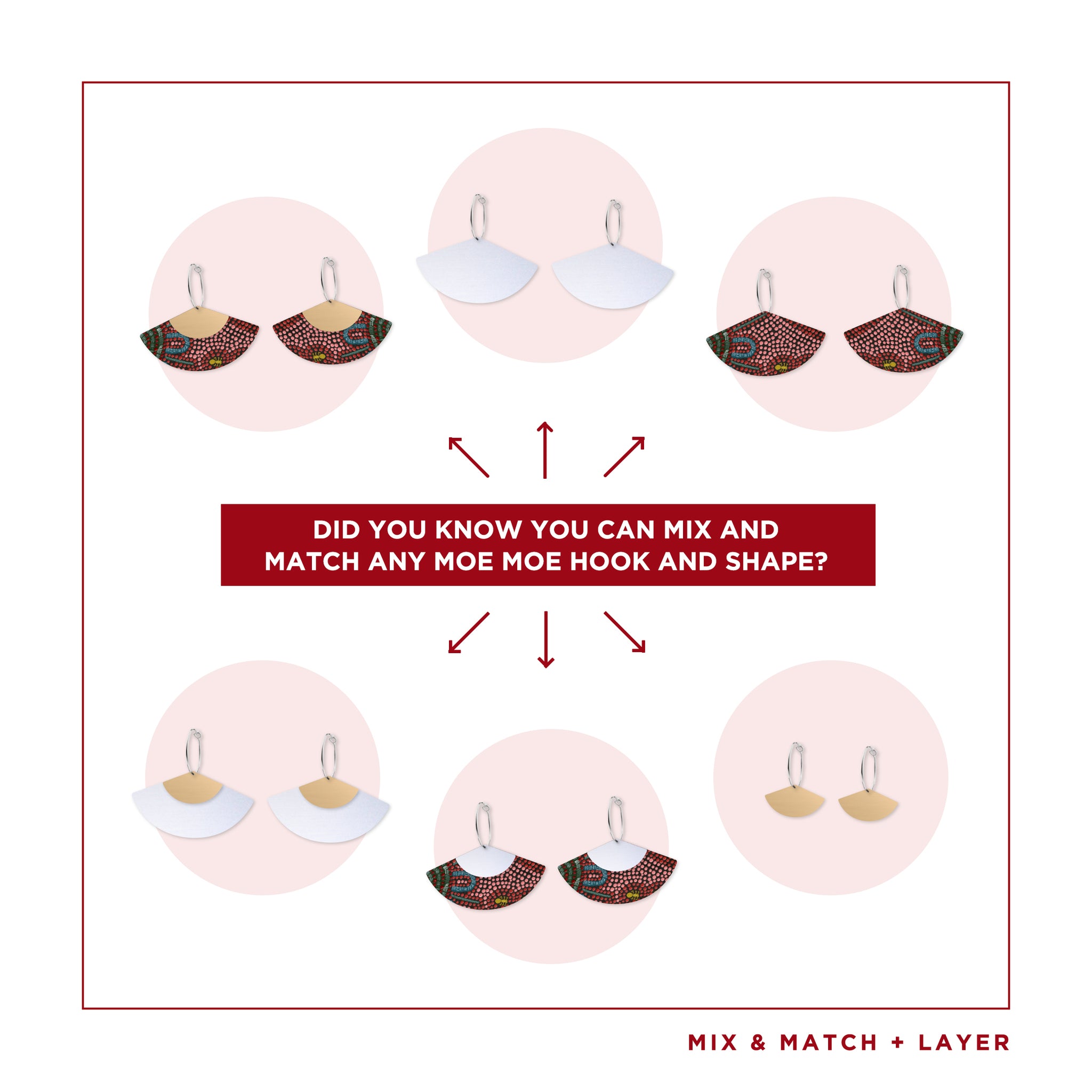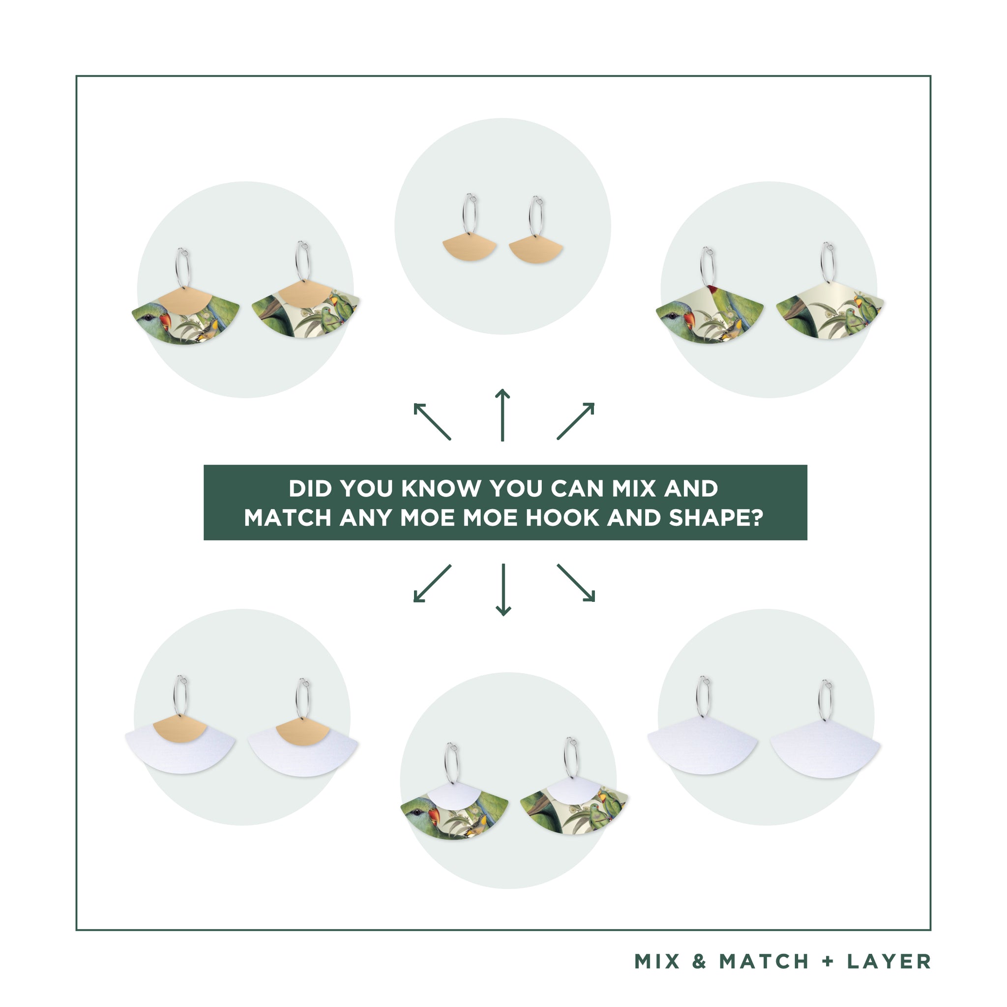 A fresh, fun take on a classic shape and hoop. Three layered pieces means you can mix & match your earrings for even more wearability. With the versatility in how you layer your...
