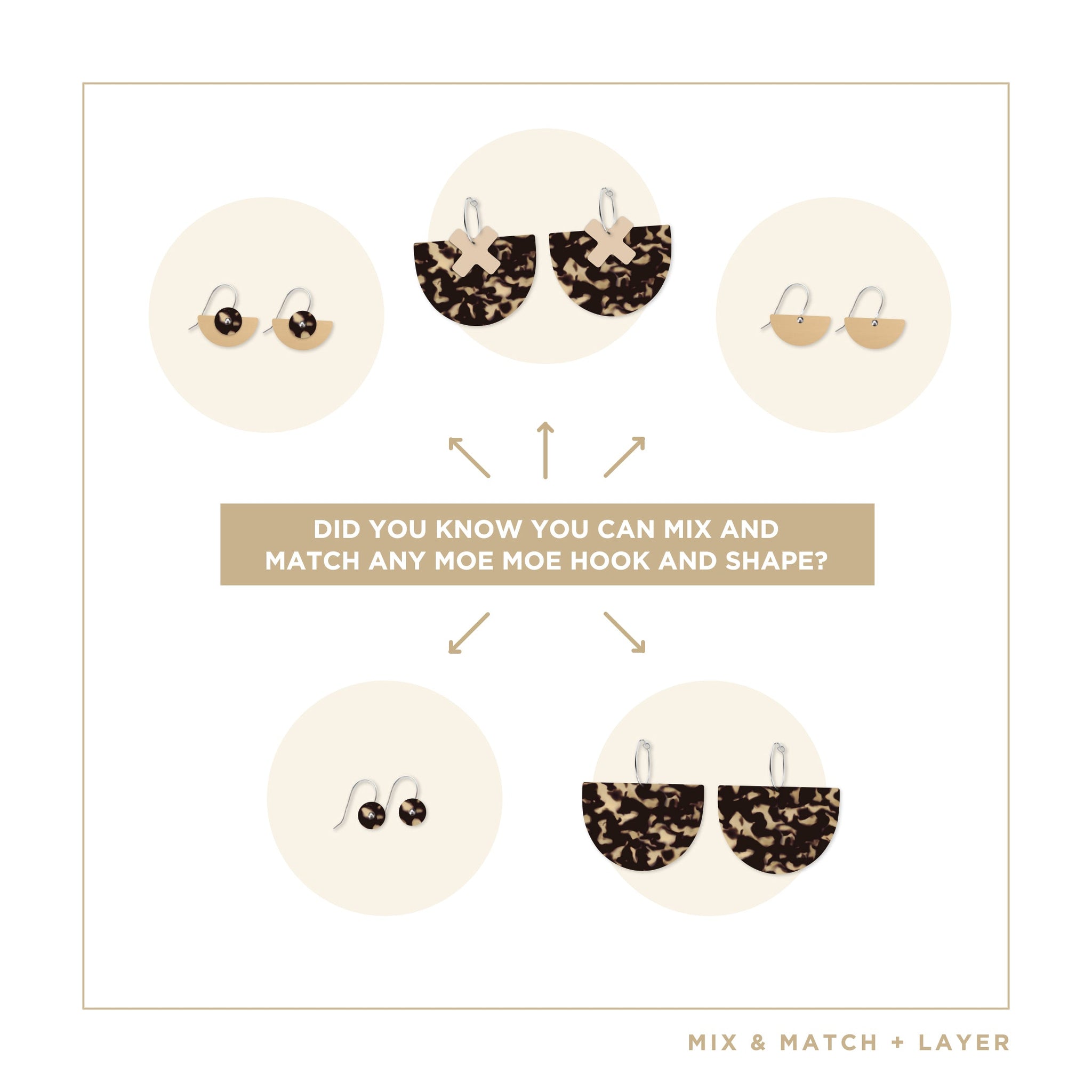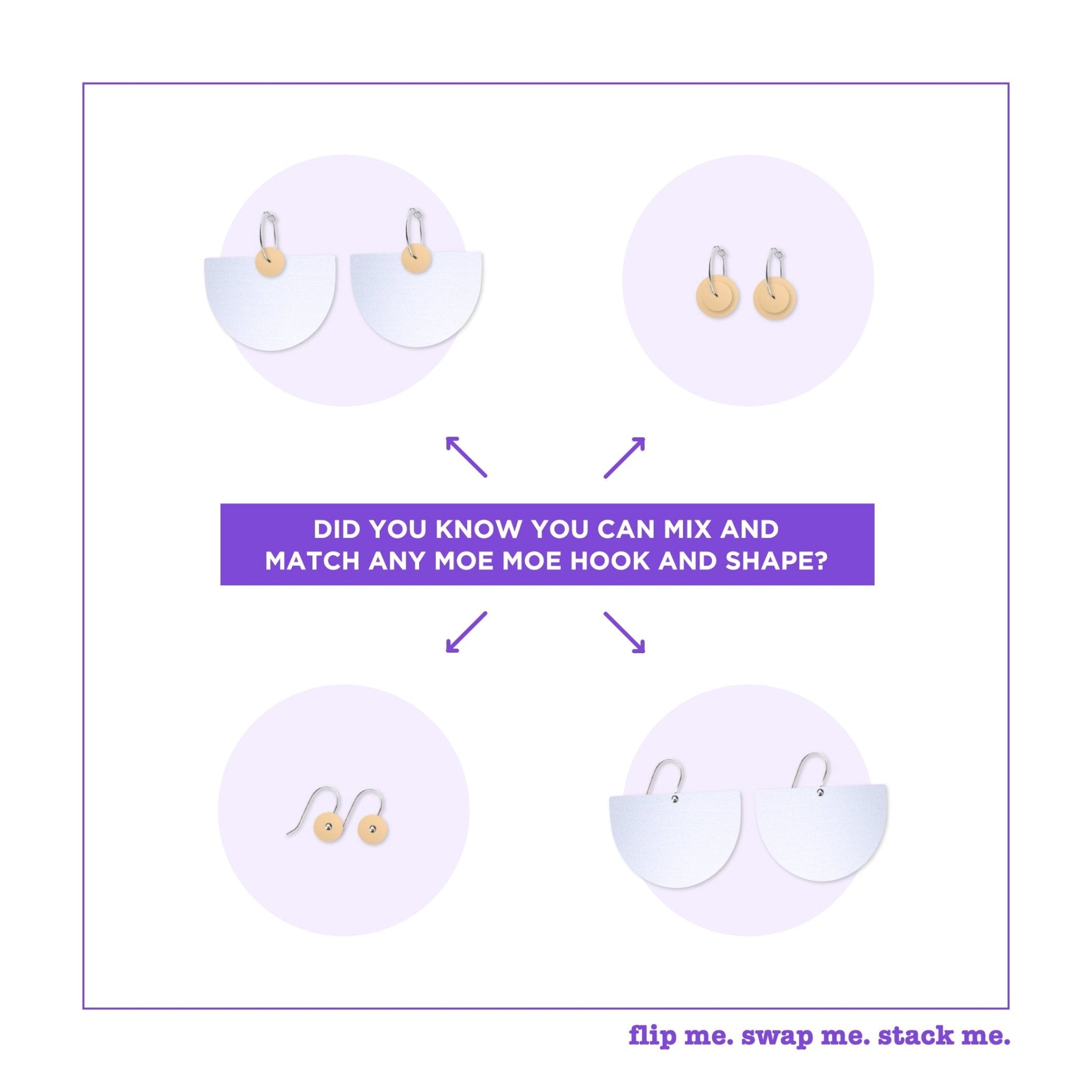 Three pairs of earrings, endless possibilities! Our Flip, Swap, Stack innovation shines in this pack, letting you mix and match metal shapes, swap hooks for hoops, and hoops for hooks....