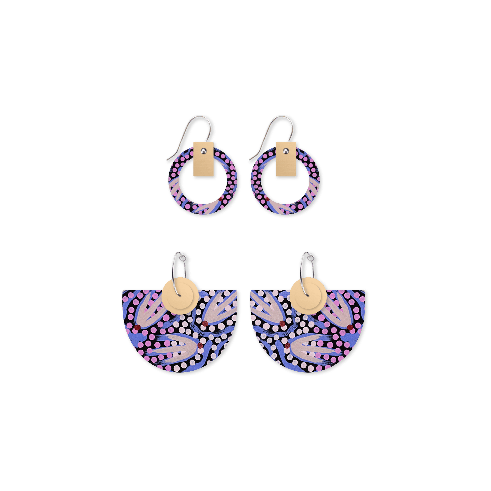 The perfect pack, featuring 2 earrings, a mixture of statement large bell and a classic shapes and AMAZING artwork, this is Moe Moe at it's peak! Featuring art by Azeza Possum. Wear these when...