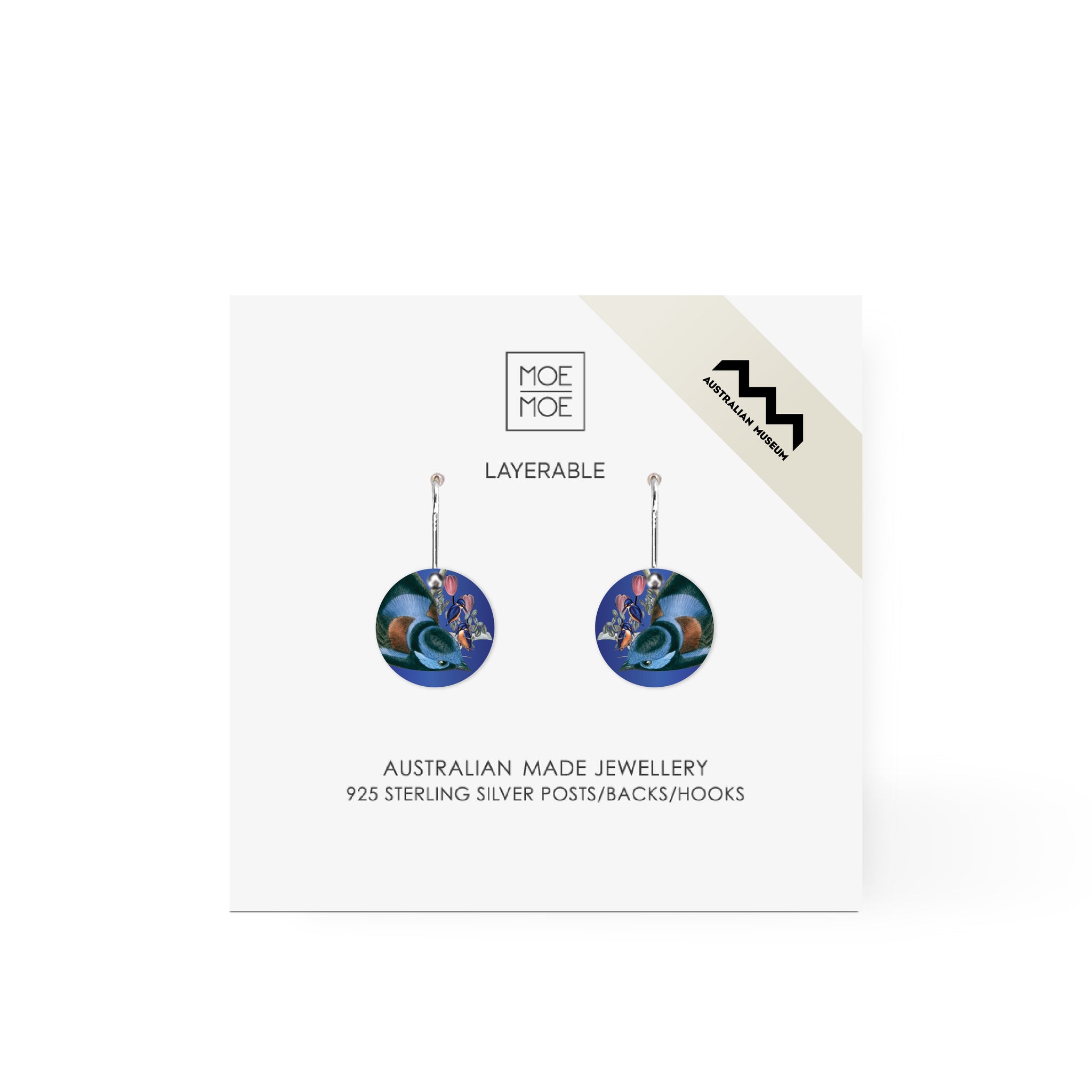 The Large Bell Circle Drop features bold, curved shapes showcasing artwork inspired by John Gould, created in collaboration with the Australian Museum. Printed on a glossy metal substrate, these earrings...