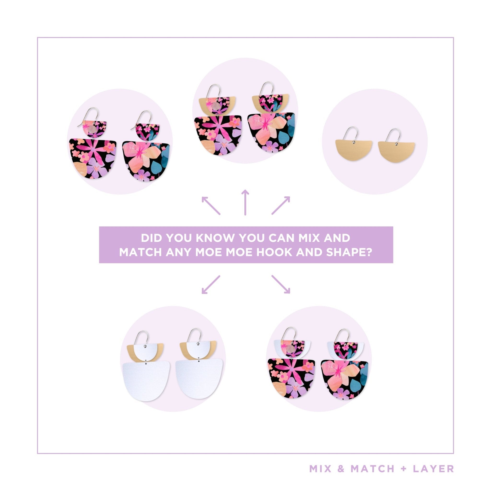 A fresh, fun take on a classic shape and hoop. Three layered pieces means you can mix & match your earrings for even more wearability. With the versatility in how you layer your...