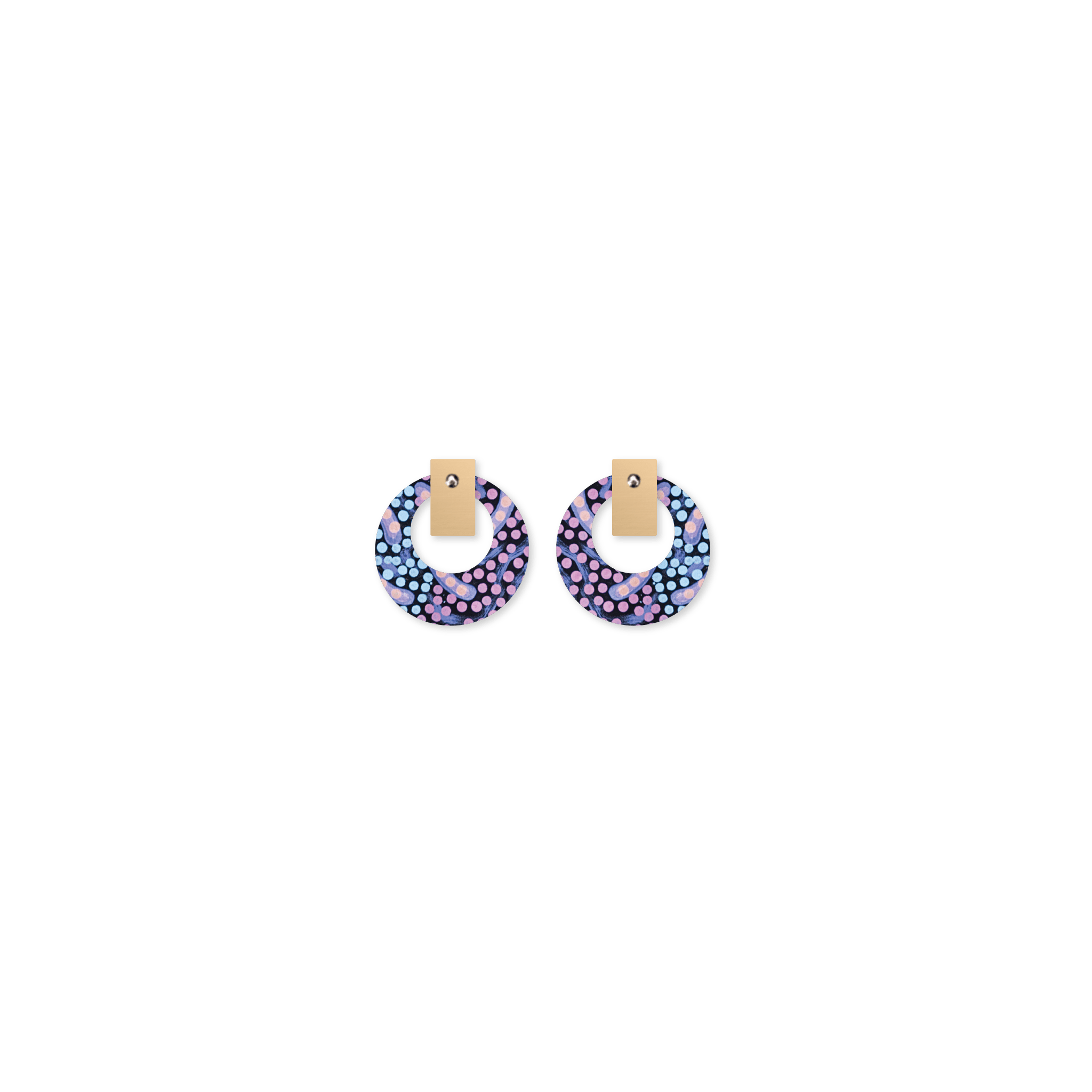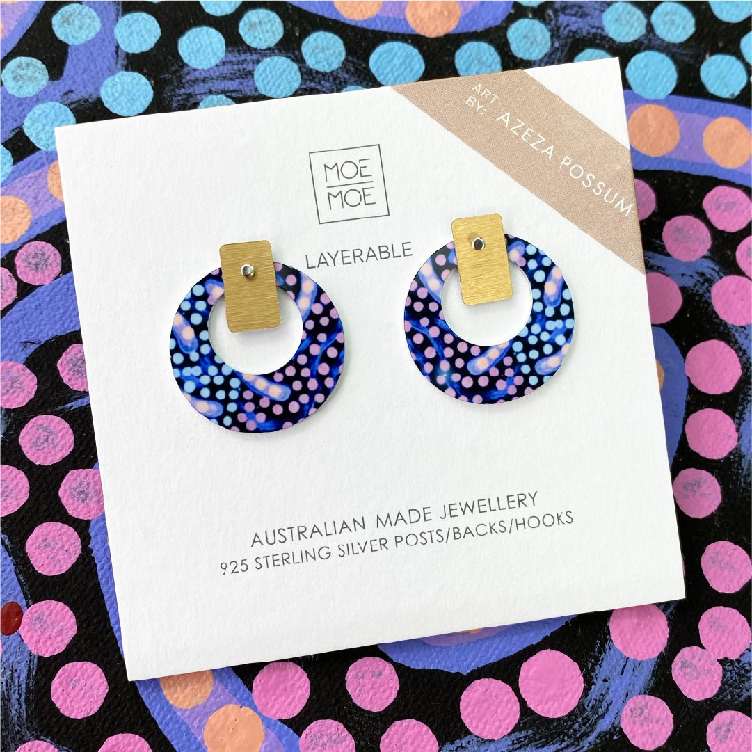 A big and bold stud earring with art by Azeza Possum. Perfect for those looking for a statement earring without having it dangling all around (mums - no little hands...