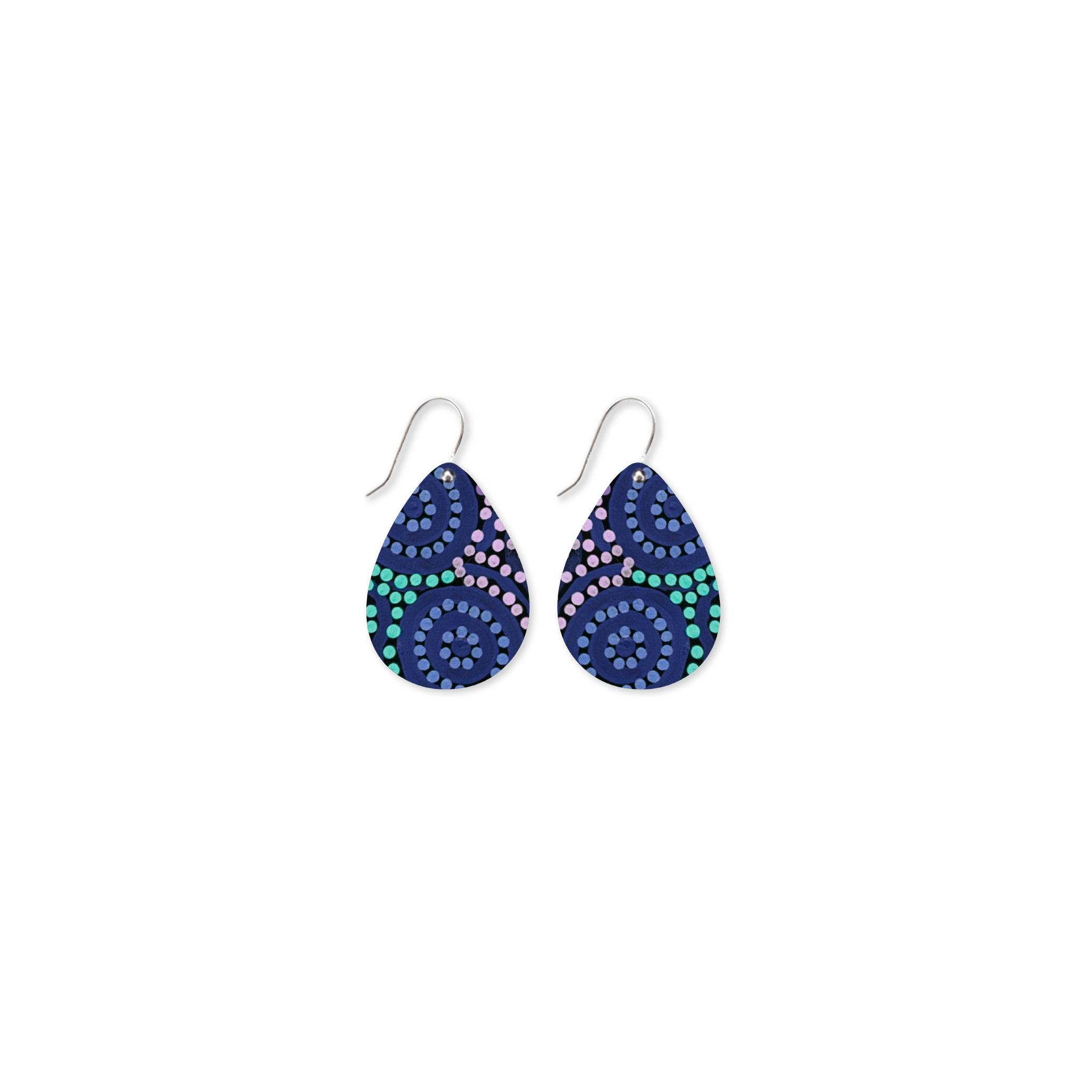 Sterling silver hooks & hoops : 18mm in diameter Reversible silver alloy panels with artwork on one side and sleek brushed silver on the other Australian made in Currumbin, QLD ABOUT OUR...