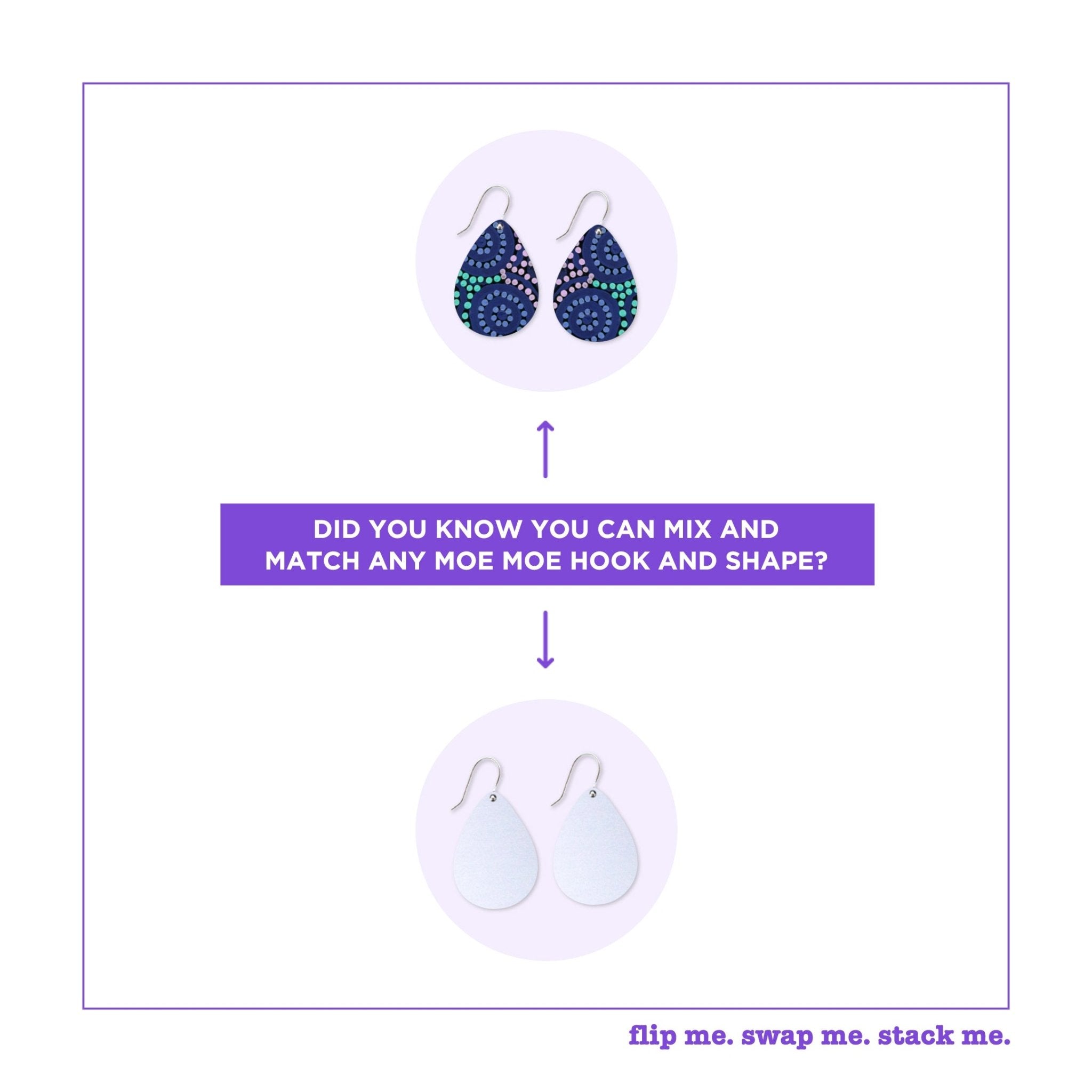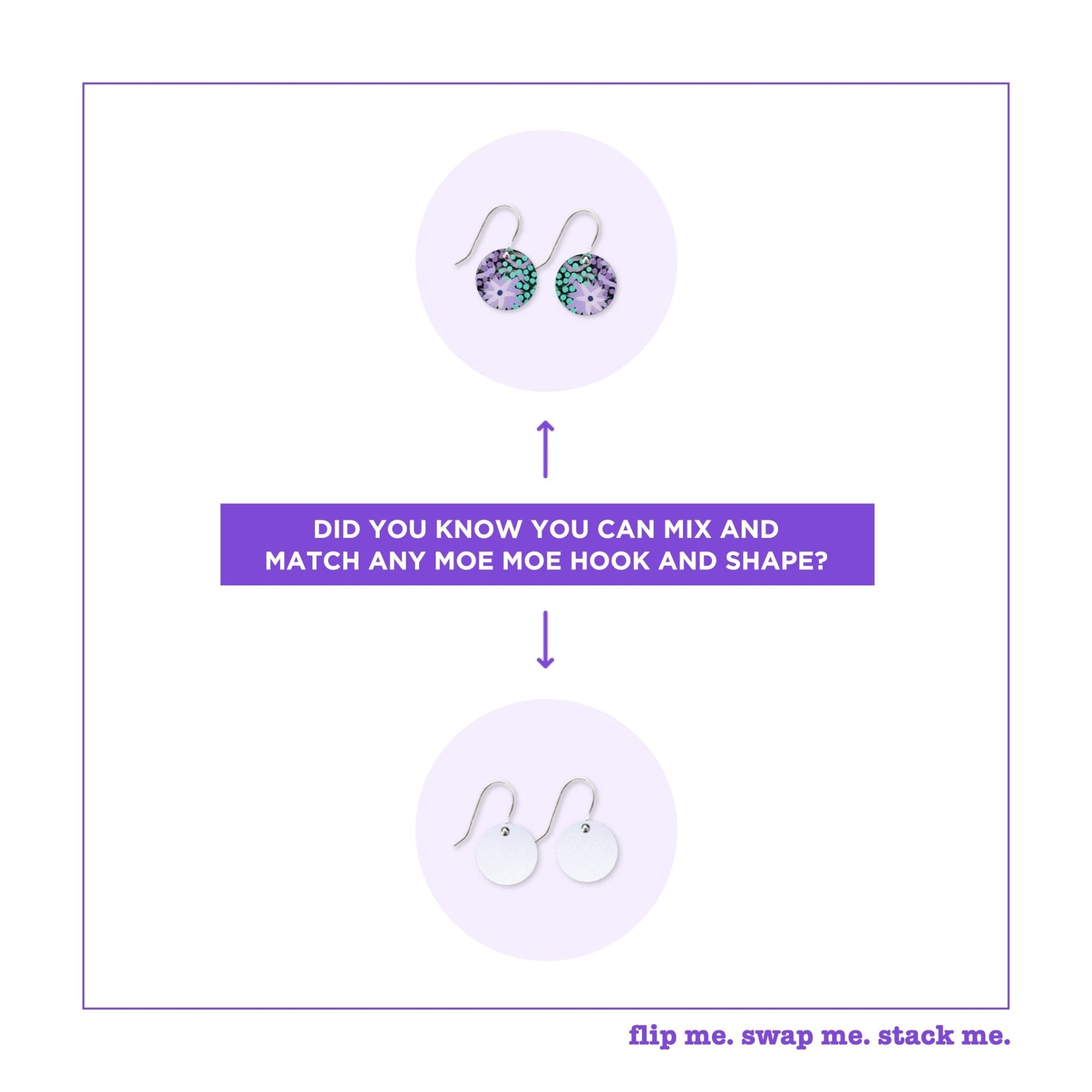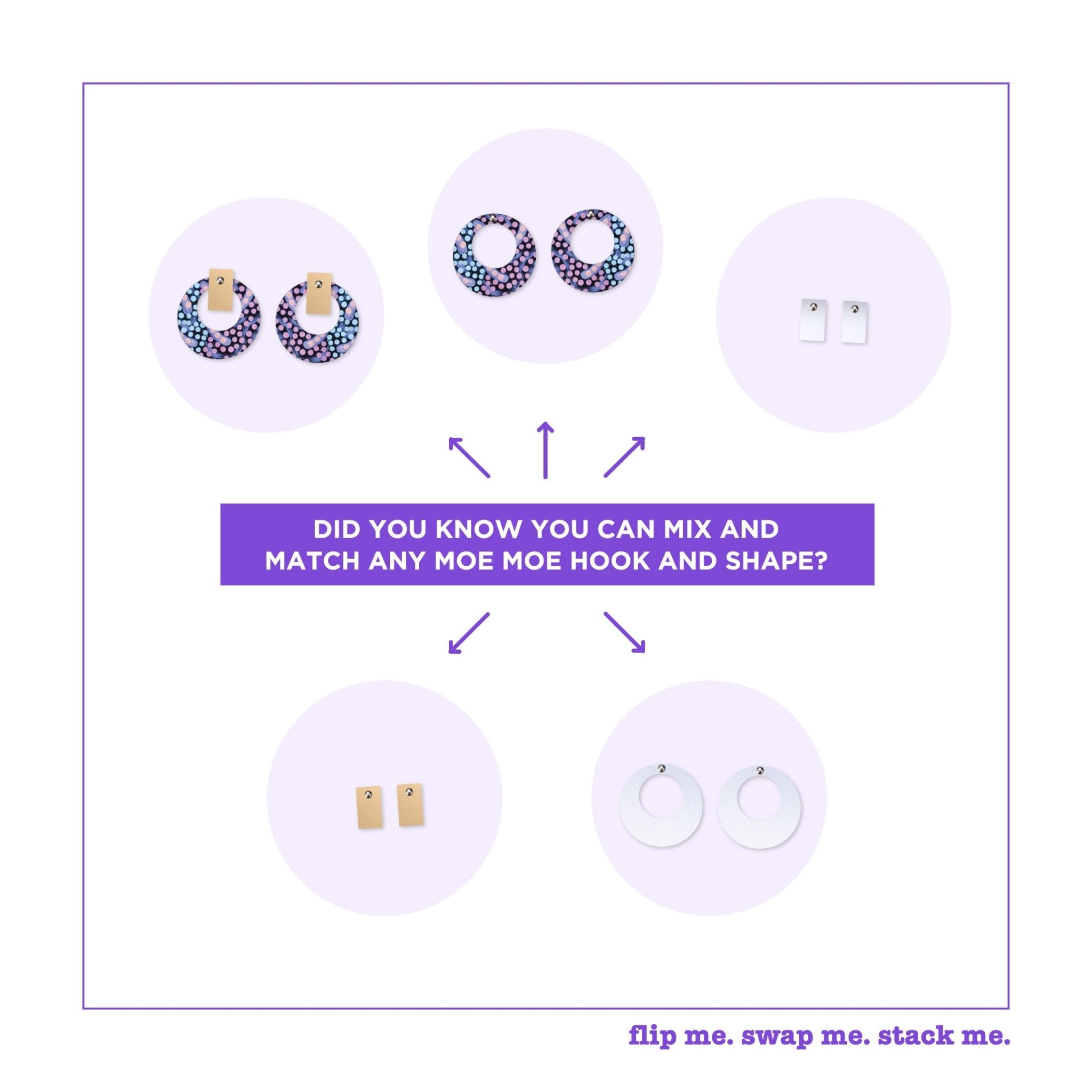 Three pairs of earrings with a whole lot of options! Our Flip, Swap, Stack innovation comes to life with this pack, allowing you to swap your metal shapes around for a...