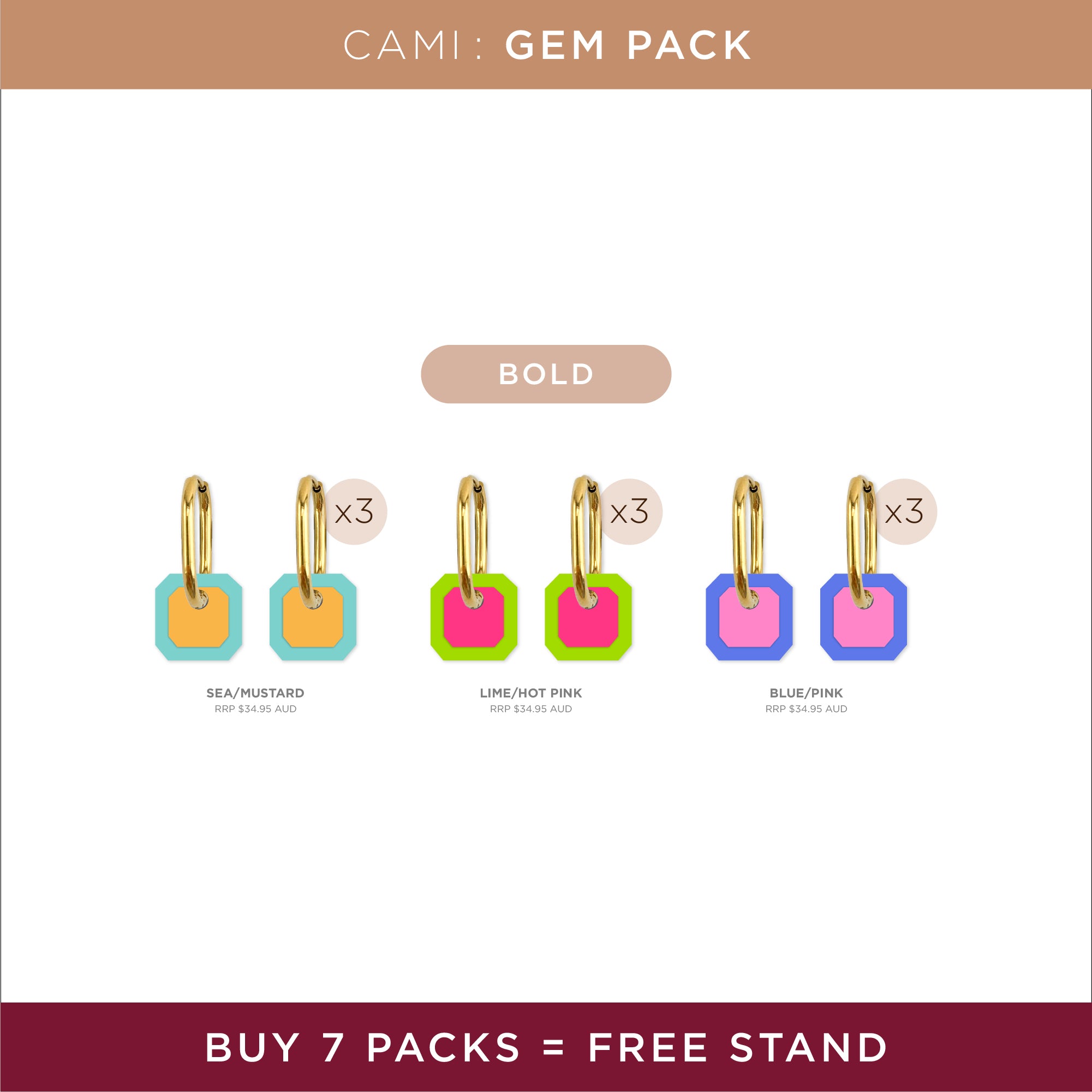 Our Gem Cut Hoops bring sparkle to your everyday look. With their bold geometric shapes and vibrant colours, they’re designed to be twice the fun! Wear both together for maximum impact or mix and match each piece to create three or more combinations. Small in size but full of personality, these gold hoops guarantee compliments.The Cami Collection is where show-stopping style meets irresistible value.