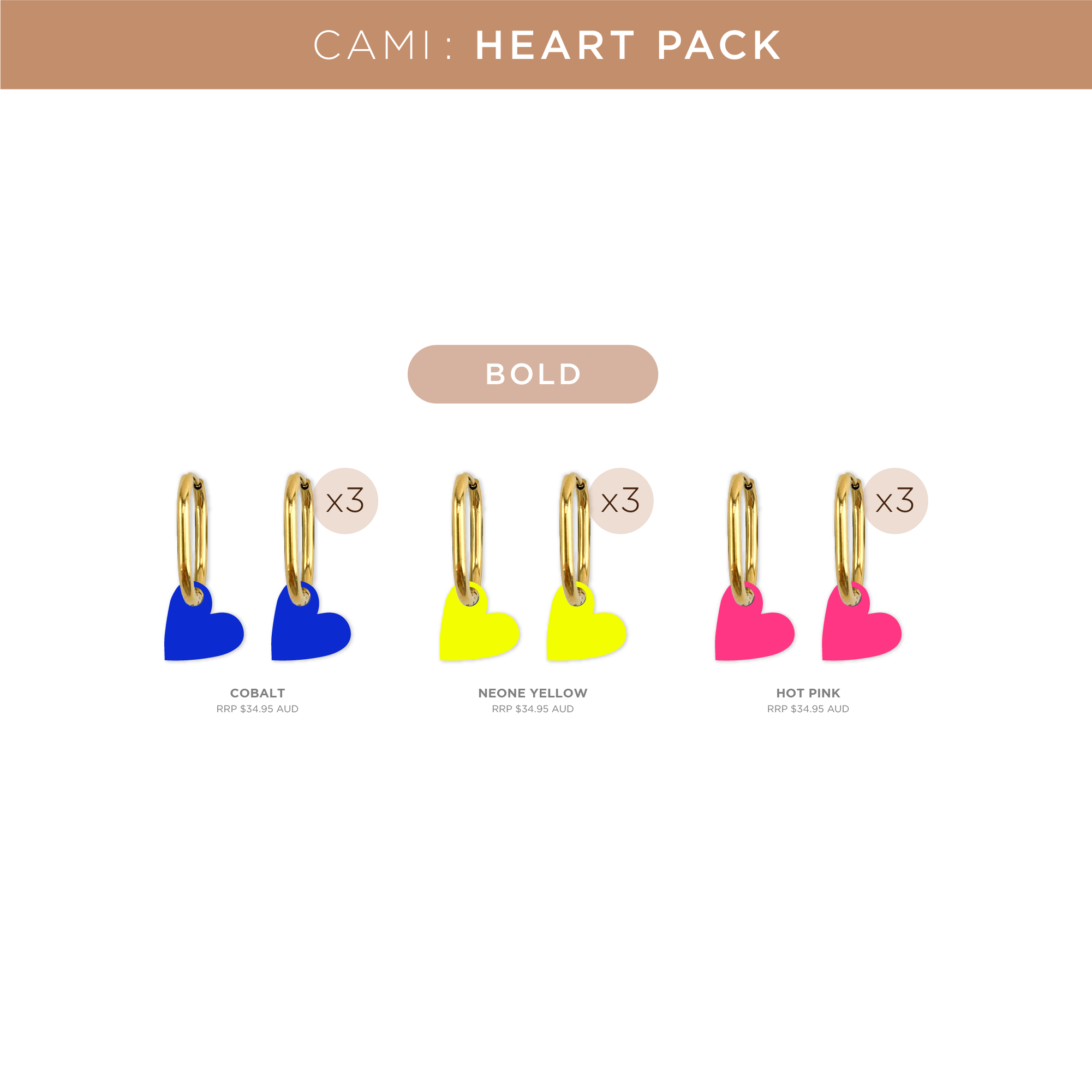A well-loved symbol, reimagined in colour. Our Heart Hoops are bright, bold, and ready to make a statement. These cheerful pops of colour are sure to bring joy to any outfit. The Cami Collection is where show-stopping style meets irresistible value