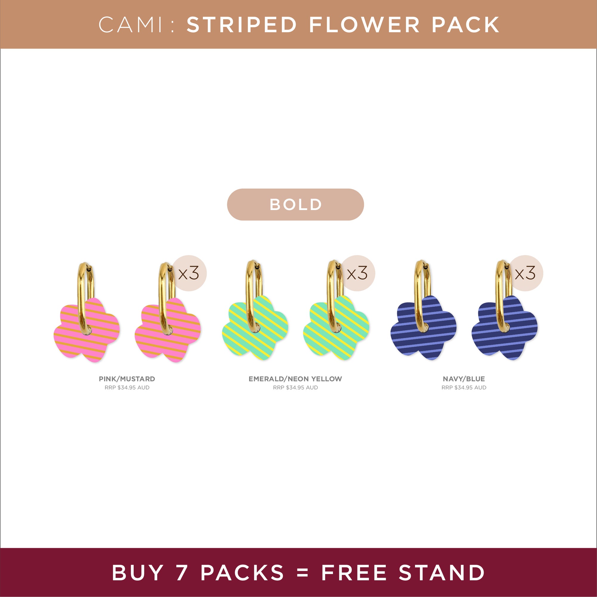 Our Floral Hoops bloom with personality. Crafted in vibrant colour palettes that capture the joy of a flower. Lightweight and versatile, they are a little bloom for your ears. The Cami Collection is where show-stopping style meets irresistible value.