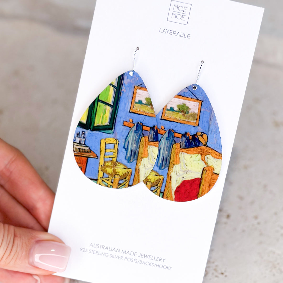 An earring for our maximalists! Our Iconic Drop is our biggest canvas for your ears, but ultra light weight (so forget the sagging). There's no better way to showcase The Bedroom artwork by Vincent Van Gogh than on these large and in charge earrings. If you love arts, culture and making a bold statement, these are calling your name.